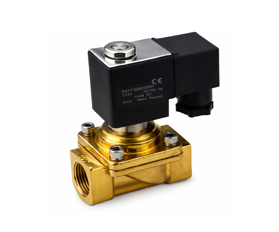 | パイロット式 (Pilot Operated) | コイルで小型パイロット弁を作動 → 流体圧を利用して主弁を開閉 | 流量容量が大きい | 中〜大流量用途、給水設備、空気ライン | – 大口径対応可 – 消費電力が小さい | – 作動に最低圧差が必要 – 低圧では作動不可 |